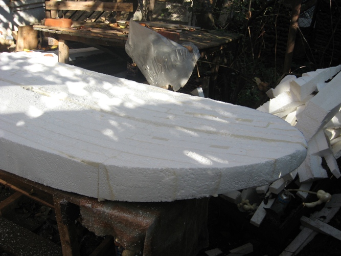 ..вроде не плохо,только пена какая-то у тебя термоядерная,раз пенопласт решила покушать.Одно важное замечание,на мой взгляд кромку на днище желательно изменить.Она не должна быть везде закругленная! В кормовой части,кромка должна быть острая,это обеспечит доске хорошую скорость и лучшую подъемную силу.А дальше к носу,где-то от передней петли ,кромку нужно смягчить,это улучшит поведение в поворотах.Естественно,придется отложить ламинирование,но советую поступить именно так,оно того стоит.