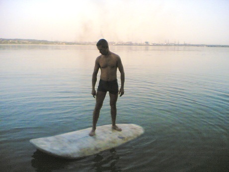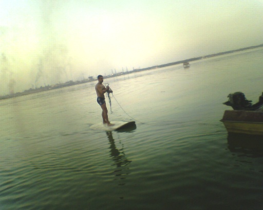 ,а потом рядом отдыхающие люди(с моторной лодкой) попросили тож на доске попробовать постоять,а взамен согласились на буксировку за лодкой.Вообщем стоя на доске,с фалом в руках,довольно спокойно и комфортно себя чувствовал,за идущей на максимуме лодкой. Laughing