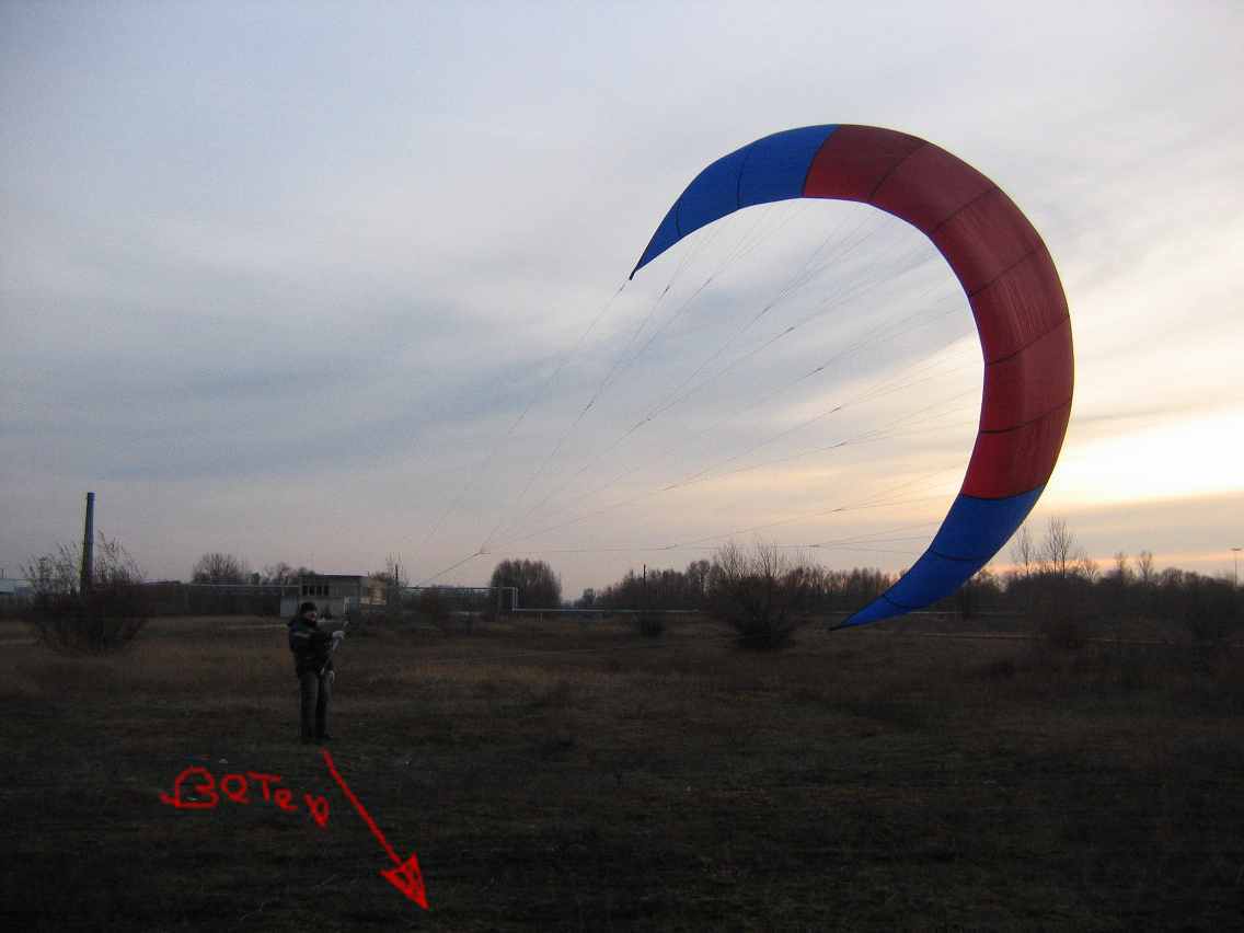 я долго ждал подходящего ветра мне нужен был северо -запад,7-10 м\с.Я собирался на море.в воскресенье все сошлось.правда ветер дул несколько сильнее.10-12 порывы до 15.понадеевшись на свой неслабый вес 120 ,я всеже поднял монстра в воздух.все было как обычно ничего