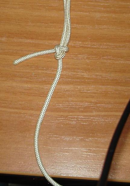Ты вместо прямого узла применил шкотовый ) Можно ещё брамшкотовый. Но если работаешь с нормальным материалом надо сразу делать нормальные петли, а не узлы.