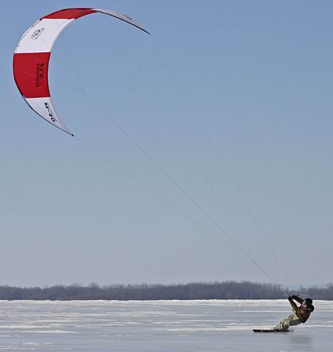 Всем привет . В субботу решил как следует покататься и получше поизучать свою параску. Ветер с утра был слабоватый, но я думал что к обеду станет посильней. Приехал на водохранилище, а там снег вовсю тает, и лужи местами .Стал кататься, а самому страшно вдруг в лужу упаду, сразу придется бежать домой . Но ничего, потом нашел место посуше и начал ездить, ветер был слабый и скорость не большая , снег был мокрый и лыжи хорошо упирались . В прошлый раз ветер был сильней и не очень крепкий наст , меня постоянно срывало с закантовки и я ездил только под 90 градусов к ветру , в это раз мне удавалось зарезаться против ветра, хотя скорость была гораздо меньше. Ветер становился все тише и тише и ездить становилось все трудней – у параски не хватало сил тащить меня , тогда я выехал на наезженную снегоходами и натоптанную рыбаками тропу и еще поездил по ней пока ветер совсем не стих .К этому времени подъехал сын с фотоаппаратом , хотели заснять параску в полете , но так ничего и не вышло, змей уже не летал , а только ползал по земле. Перед этим на неделе пришил к параске еще 14 колечек в добавку к тем 7 что пришивал раньше теперь они в центре горба приблизительно 33процента, ближе к передней кромке 16процентов, и дальше горба 49процентов, хотел вывести их на одну веревочку чтобы можно было на ходу изменять толщину профиля , но из-за отсутствия ветра испытать не удалось .Зато испытал еще одну задумку- у меня очень часто ухи параски перехлестывались через стропы и постоянно нужно было подходить и все это распутывать . Я взял тоненькую резинку длиной около 4 метров , которую продают в рыболовных магазинах и используют для донок, один конец привязал к центральной стропе в месте соединения с куполом, а другим концом обхватил все стропы с наружи, кроме клевант, и привязал его в той же точке что и первый конец. Получилось кольцо диметром чуть больше метра В полете резинка растягивалась стропами, слегка сжимая стропы, на земле резинка сжималась и убирала слабину строп сводила их в центр, путаться стало гораздо реже , мне понравилось .Было хорошо видно как параска летает на передних стропах , а задние утягиваются резинкой . На управление эта резинка повлияла не заметно ( а может и совсем не повлияла) даже при таком слабом ветре. В полете резинка распологалась между куполом и узлами второго яруса. (смотреть во вложениях)