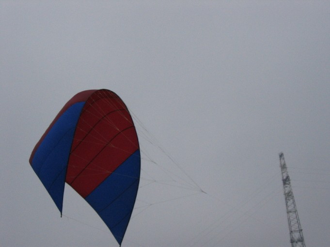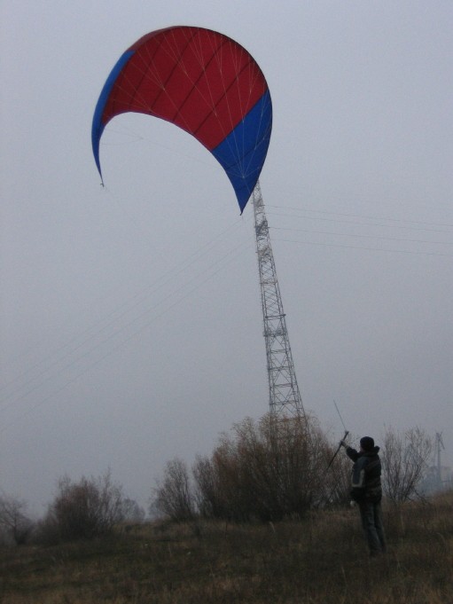 попробовал даже скрутить кайт в трубу на манер Канадской(штормовой вариант)