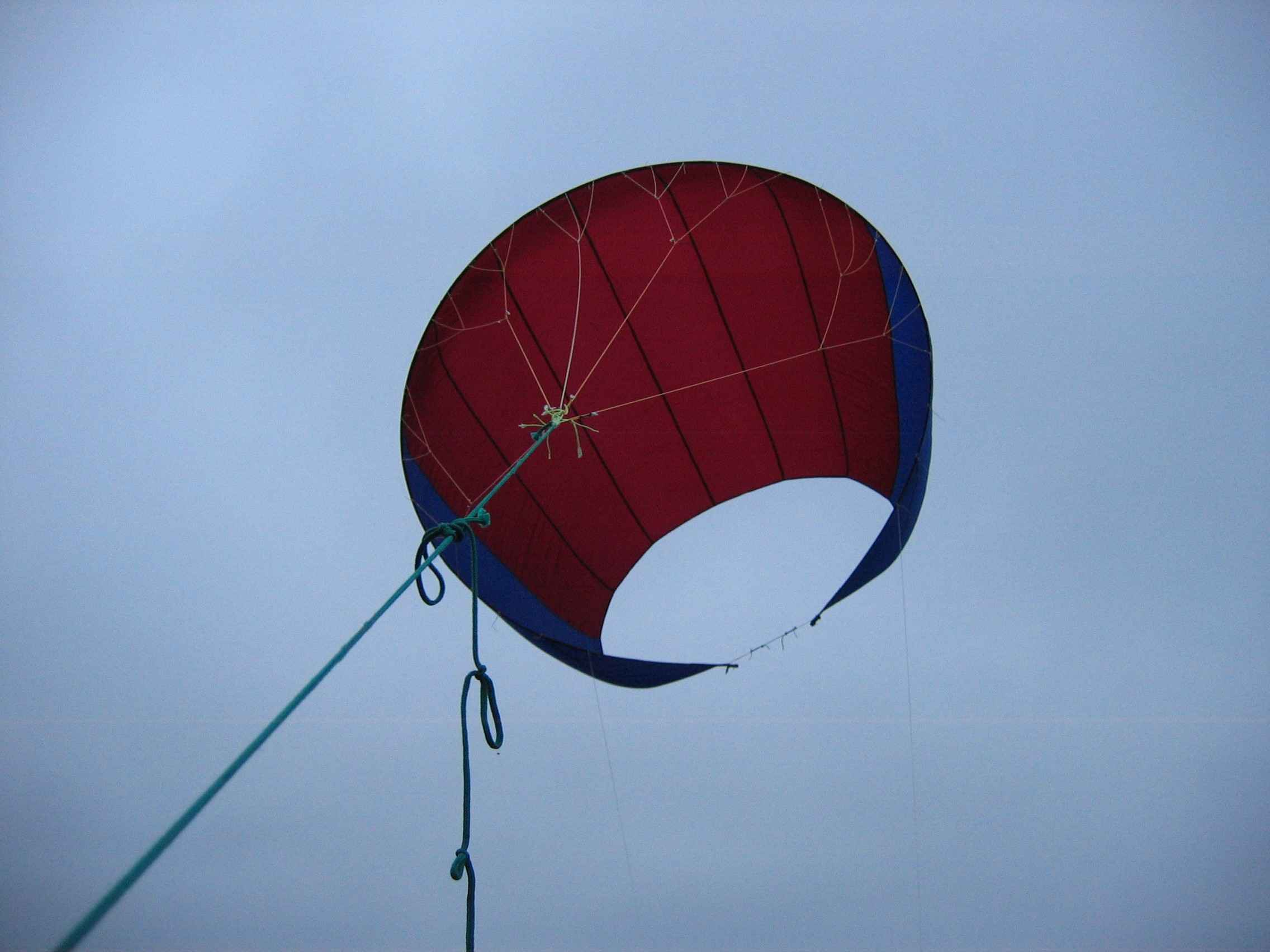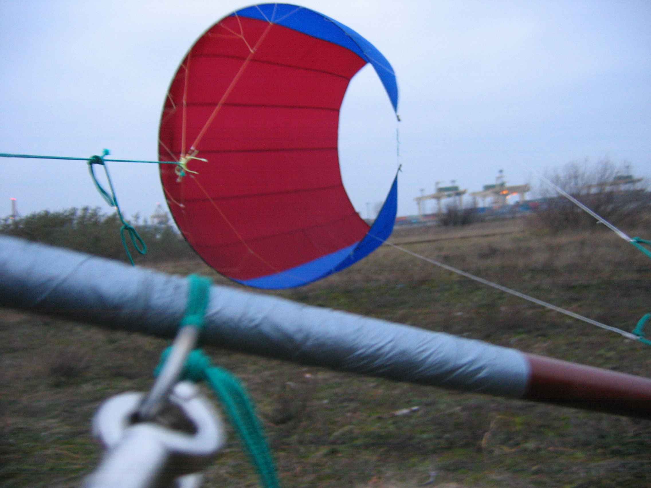 попробовал даже скрутить кайт в трубу на манер Канадской(штормовой вариант)