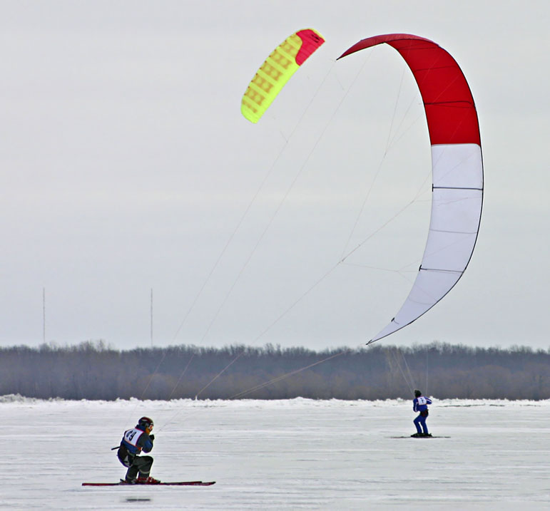 Таким образом, выяснилось, что ветер, порядка 4 м/с критичен для взлета Магика, поэтому заявленные производителем каталки от 2-х м/с весьма проблематичны. Тяга кайтов при нахождении в зените была несколько сильнее у Пассата (это и не удивительно, учитывая большую площадь). Динамометр мы не применяли, но визуально было видно, что один и тот же порыв ветра порядка 5-7 м/с у Пассата вызывал необходимость парировать его небольшой пробежкой, или происходило протаскивание кайтера по мокрому снегу 1-2 метра. Те же порывы у Магика парировались стоя на месте.