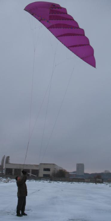Он ведь уже практически то же самое, что и обычный С-кайт. Так сказать, зимний балонник. И эффективность по площади у него такая же. Сопротивление лобовое, правда, поменьше должно быть. Зато куча проблем с передней кромкой (похоже там латы ставят).