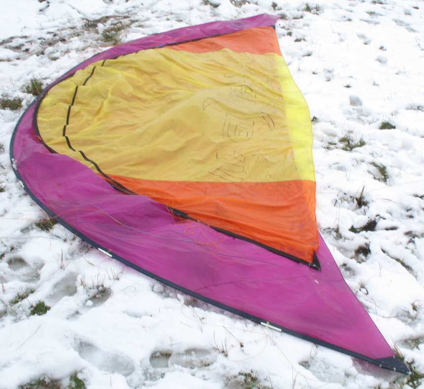 Итак, разворачиваем и осматриваем кайты. Внешний вид отличается строго-фиолетовым у Пассата и более веселой желто-оранжевой расцветкой у Магика. Качество изготовления находится приблизительно на одном уровне. Явных грехов в виде расхождения и кривизны швов, перегруженных и не усиленных мест, и прочих явных конструктивных или производственных недоработок не выявлено у обоих кайтов. Сборка каркаса заняла примерно одинаковое время до 4-5 минут и заключалась в проталкивании через карман передней кромки карбоновых стержней с вклеенными на концах сгонками у Пассата и соединении таких же стержней такими же сгонками в вырезах передней кромки у Магика. Обе операции не вызвали каких-либо затруднений, разве что соединение двух последних стержней у Магика было немного трудным из-за натяжения кармана, а первый стержень Пассата иногда задевал за петли на передней кромке, и приходилось пару раз поправлять его. Сматывание накрученных на планку управления строп также заняло секунды без каких-либо затруднений и запутывания, ввиду небольшого количества строп (один ряд, два яруса).