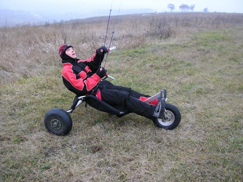 Мы уже несколько лет как построили и успешно эксплуатируем свою клубную телегу. В свое время Владимир Яворский занял на ней третье место в первом Украинском чемпионате по лэндкайтингу в общем зачете. На фотографии наша телега после очередной модификации двухнедельной давности. Теперь вся телега сделана из нержавейки, которая действительно является в наших условиях оптимальным материалом. Правда, варить лучше аргоном, оно и красивее и прочнее будет. Улучшена геометрия и развесовка по осям. Это связано с тем, что следующим летом собираемся поставить её на поплавки попробывать гонять по воде.