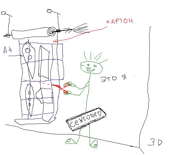 ингредиенты:картон в рулоне,клей канц. типа карандаш ,линейка или циркуль ,кусок стены,метла спертая у дворника.2 гвоздя.