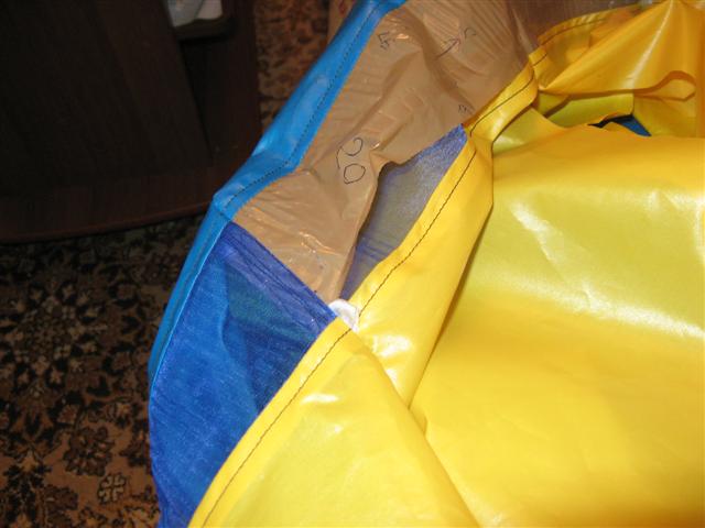 2. Начинать шить лучше с верхнего скина (пробывал и так… и эдак…)! На нем больше радиус кривизны, а при шитье легче, когда трудные криволинейные участки прострочить вначале (тем более, что в начале можно скины сшивать попарно (чтобы не пропихивать весь кайт через машинку).