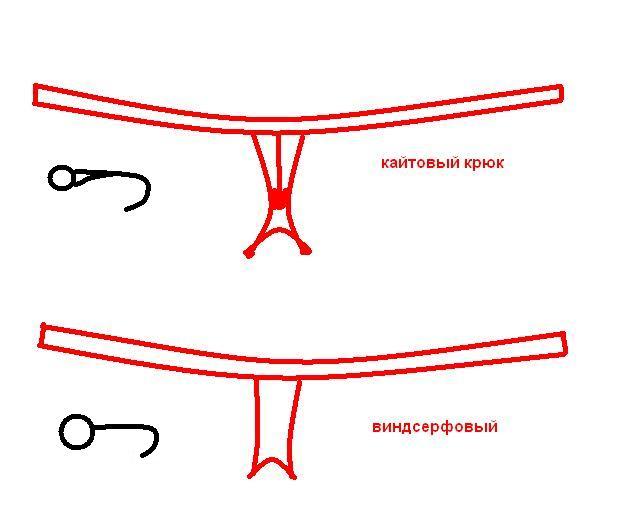 так как вектор силы на кайте может меняться .то и крюк несколько отличается от виндсерфового.плюс в крюке должнобыть достаточно места для пальца чикенлупа.