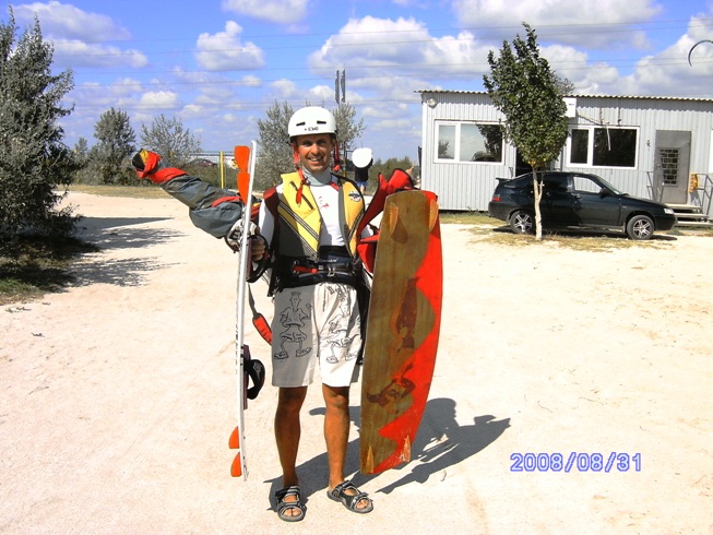 З.Ы. насчет самообученя в водном кайтинге. Нехочу никого,особенно новичков вводить в заблудение,что мол,при нормальных условиях прямо так встал и поехал,а чарез три часа стал поворачивать.Все совсем не так. Имеется некоторый опыт в катании с кайтом на маунте и сноуборде. Уверенно катаю на доске за катером.Перерыта масса информации по теории,плюс до дыр засмотренные диски с обучающими фильмами.....