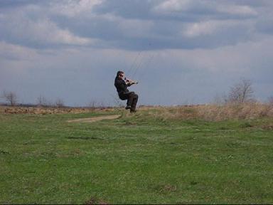 Я вчера вечерком тоже с кайтом вышел,правда в поле(нелюблю воду холодную)Дуло не очень сильно,в порывах максимум 7,5.До подскакивался,блин... Crying or Very sad ладонь счесал и пяткой так садонулся,что теперь ненаступить(все в бинте эластичном)...