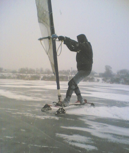 В начале решили кататься с парусом.Первый галс выявил серъезный недостаток - плохая заточка коньков.Впринципе я знал что нужно хорошо точить,но не знал насколько. Поэтому заднюю подвеску сильно сносило (да и переднюю тож).Чтоб немучится,решили быстренько съездить к знакомым в гараж(благо совсем рядом) и наточить лезвия. Стало гораздо лучше,но всеравно,для такого льда нужно чтоб коньки были как ножи в буквальном смысле.