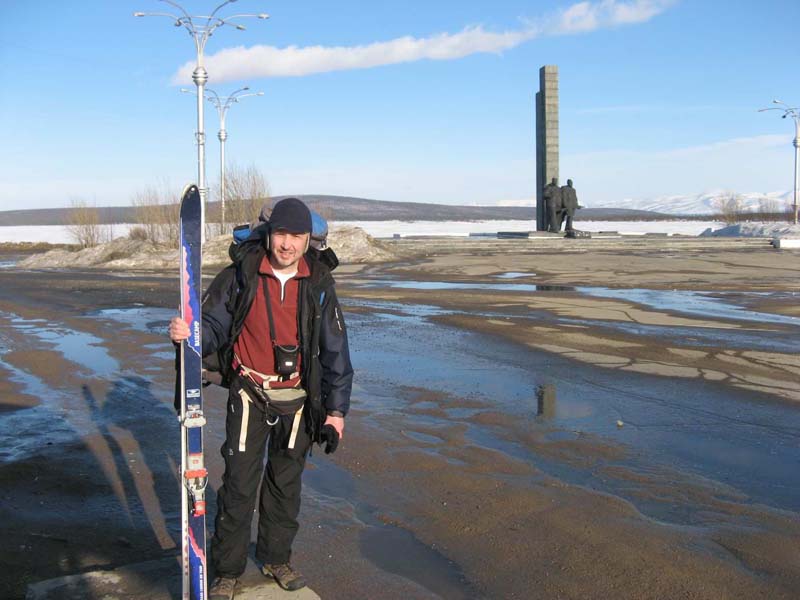 Фотки Диплодока. На финише мы с ним на фоне монумента в Мончегорске.