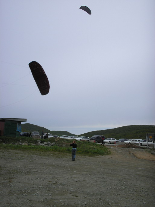 пилот Андрей Гущин,.Кайты на ручечном управлении,4,5кв на 20-метровых стропах,5кв. -на 30 метровых кевларовых стропах,.Группа подержки с "Ехтреме Дансе"города Нахолка,всее мероприятие в честь мотомарафона.Жаль что не все смогли поехать!.Один наш подопечный сейчас находится в Екатеринбурге!