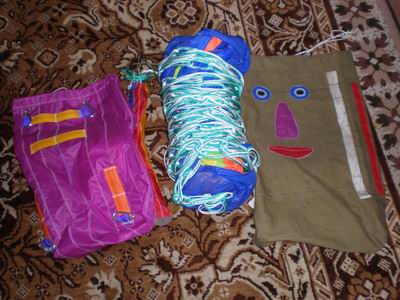 Я эту мысль увидел как делают бионики. Есть такой видео. Ну там все как по науке - на планке прищепки, планка на блоке. Я планку бы и сделал, но места так мало что караул. А стропы для птицы в принците только для отработки центровки в варианте кайта и в варианте параплана, затеи нормальные стропы. Еще одна задумка. Сейчас буду шить "болванку" - мистера баллхеда, для испытаний птицы в качестве параплана. Shocked . Даже фэйс придумал.