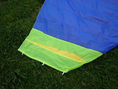 Носовые жесткости, усиления под места крепления строп, жесткости по передней - верхней и нижней оболочки - все делал из листового полиэтилена (типа полиэтиленовых крышек для банок), сосед принес с работы рулон. Толщину не замерял, думаю 0,5-0,8мм. Жесткости по передним кромкам (ширина 10 мм) делал с каждой стороны на 3 см меньше ширины скина, затем обматывал тканью, прошивал, так чтобы концы были матерчатыми на 1-1,5см, пришивал между лентой (лента - ткань купола ширина два подворота) и LE полотна зигзагом на 6 уколов, а затем подворачивал вовнутрь и одним швом пришивал. Усиления под места крепления строп делал аналогично, фирина 8мм, длина 3 см с матерчатым припуском по концам - легче пришивать к рибам. Носовые жесткости ничем не обматывал - просто пришил, единственно - исскуственно уменьшил их жесткость "продырявив" их иглой без нити зигзагом на 6 уколов. Отступ на носовых жесткостях и под крелления - на ширину лапки от края материала.