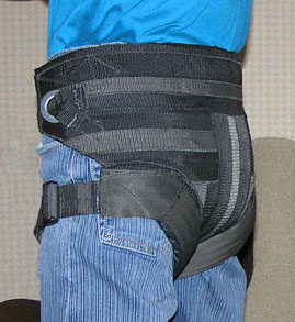 Сшита из пяти лент: одна поясная с пряжками, к ней пришиты две для поддержки спины, по бокам пришита одна передняя с ветлюгом, и одна короткая соединяет сзади все три ленты. Одевается как пояс (тут главное при шитье выбрать минимальный диаметр чтобы без проблем одевалось в зимней одежде), потом застегивается пряжка на поясе чтобы трапеция сидела плотно. Сзади три ленты немного топорщатся, наверно лучше пришить там ткань или сшить ремни вплотную друг к другу. Но в принципе и так сидит нормально, зато простая конструкция. Другие фотографии: