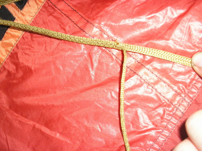 Интересно, на парашютах или парапланах когда либо использовалось крепление строп как на кайтах NASA? Там две точки на куполе соединяются одной стропой, а нижний ярус крепится к ней примерно посередине хитрой петлей, типа обычной, но с дополнительным обхватом всего узла, чтобы не скользило. То есть не нужно на верхнем ярусе шить две петли (экономия 20 см, проще отмерять стропы), но в одной точке на крыле придется крепить не петелькой, а узлом. Наверно так никто не делал, все таки на узлах ненадежно, и связка теоретически может скользить... В итоге, видимо обычное соединение петля в петлю самый оптимальный вариант.