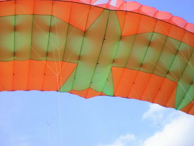 Правда из этого мало приятного,так как в эти моменты можно припечататься!Поэтому на каждом куполе имеется свободный ход клевант строп управления,на некоторых куполах изначально стропы управления длинше,плюс верхнея поверхность по передней части лобика нервюры обтекает больше и закрывает больше,для того чтобы в режиме свала воздух прогресивно невырыался, и получаеся чтоб свалить купол ,нужно вытянуть стропы и наматываать их на руки ,только тогда он начнет задний свал ,--сделано это с тем расчетом чтоб неубиться при маневрах особенно на малых высотах при заходе на посадку и приземлений на точность посадки! Rolling Eyes
