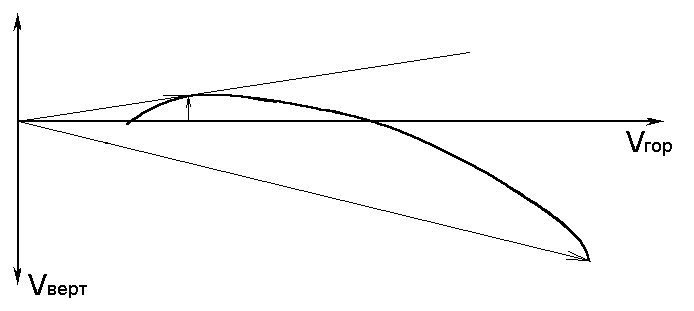 Весьма нужный и полезный график - Пример поляры на которой представлена произвольная скорость с соответствующей вертикальной и горизонтальной скоростью.