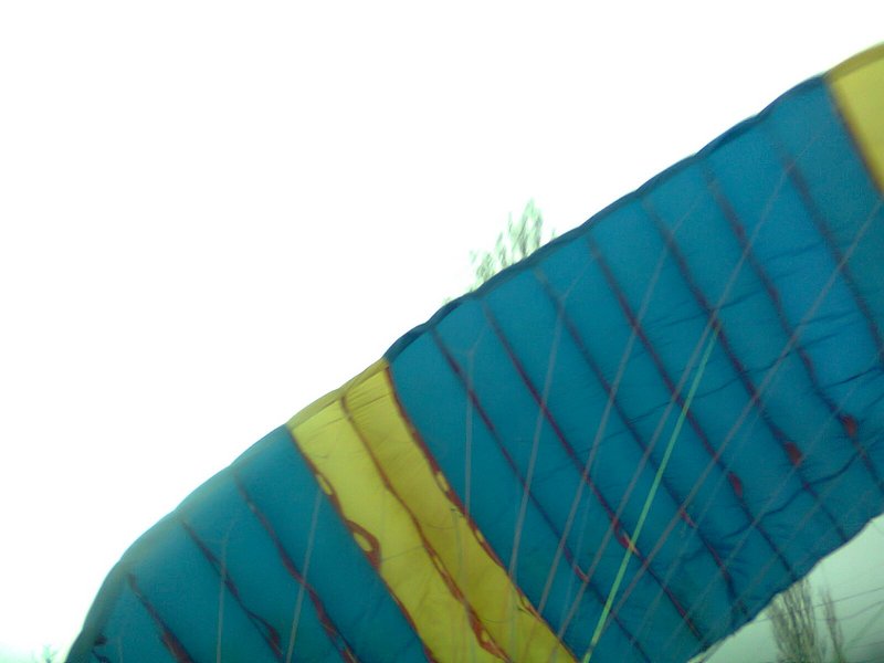 Так вот наземили и бегали с ним по полянам и холмам, в приличный ветер с трудом можно было удержать.Потом позже нашил часть нижней оболочки примерно до 3-4 ряда, характеристики изменились.Пытались подпрыгивать-вроде как немного придерживал наш бараний вес. Однажды налетел порыв и я задом с крылом забежал по косогору, еще немного и кто знает- может повис бы на столбе или проводах ЛЭП, с трудом задовил клевантами... В последствии занимался наземкой сугубо на ровных и открытых площадках...