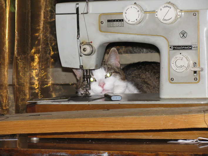 Она к сожалению кошка, поэтому ни черта не шьет ни крестиком ,никак по другому. За то она одна единственная из домашних, кто не возражает против спидглайдеров, парапланов и полетов.