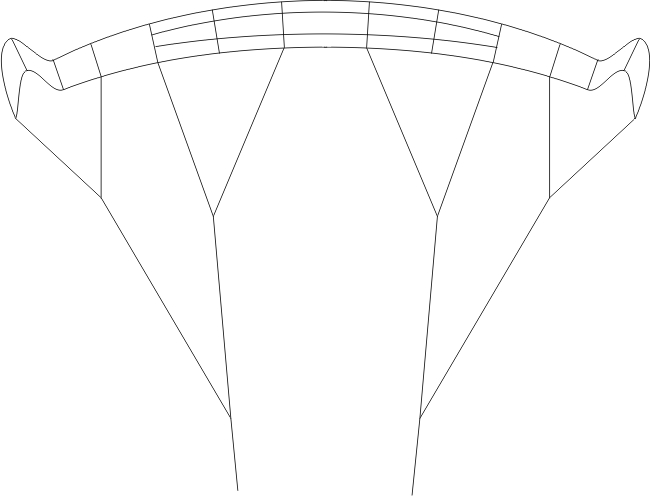 Ширина каждой секции должна уменьшаться пропорционально хорде. То есть в центре хорда больше и секции шире, а на ушах хорда меньше и ширина секций тоже меньше. А в вашем проекте всё наоборот. На ушах ширина секций слишком большая, да ещё и стропление через нервюру. В общем, подождите нормального ветра, там видно будет.