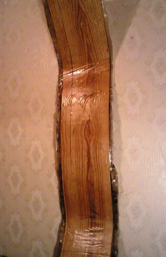 сверху слой шпона,потом стеклопластик,потом опять переклейка шпона,потом опять стеклопластик с усилениями середины и загибов,потом ,внизу фанерная полоса.
