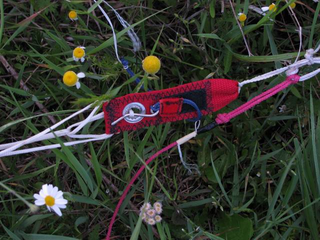 Парашютик не складывал вообще. Так как купол с втянутой вершиной, по верху купола пришил ряд петелек (вместо одной для простого купола), через них пропустил, скользящий замкнутый шнурок, чтобы было за что цеплять его к кайту. Собрал скользящий шнурок между петельками в пучок, и этот пучок уже непосредственено к отцепке. К двум основным стропам, в месте крепления Q-петелек (место перехода купольных строп в основные) прикрепил две гибкие отцепки, по одной отцепке на каждую основную стропу (просто у меня два парашютика для испытаний, один типа простая парапланерная запаска с окружной щелью, другой типа запаска, тоже только ппюс еще одна окружная щель в районе полюса типа запаска фирмы метаморфози. Вдоль основных строп через 1.5 м прикрепил бумажным скотчем петельки из толстой капроновой нитки. Такую же нитку пропускаю через петельки, один конец фиксирую на чеке отцепки, другой на ручке. Все. Универсальная система подъема готова.