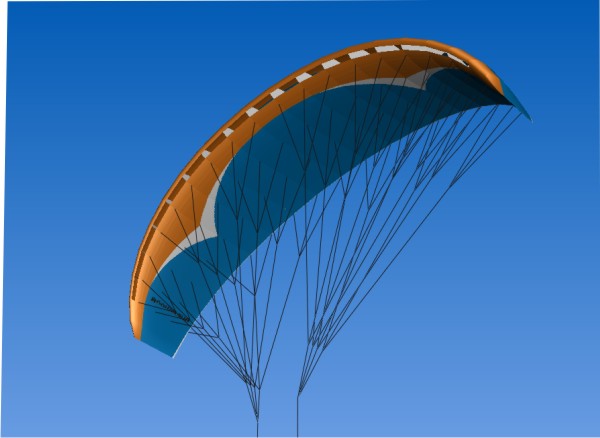 Планирующий парашют обладает, в отличие от традиционного парашюта, высоким аэродинамическим качеством. Купол-крыло параплана выполнен прямоугольным в плане, сшит из двух слоев воздухонепроницаемой легкой синтетической ткани с внутренними нервюрами. У передней кромки слои не сшиты, и при полете воздух заполняет полости, образованные нервюрами. Скоростной напор набегающего воздушного потока преобразуется в статическое давление, полости-карманы упруго выправляются, купол приобретает жесткость, форму и свойства несущего крыла. Собственно говоря, это уже не купол — это крыло со стропами, прикрепленными к подвесной системе человека или груза.