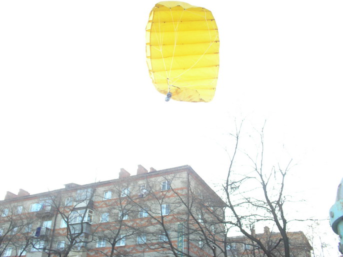 ...о,я помница в детстве тож этим болел.Тока в те годы все круглые купола кроил(маленький я еще был).Потом на аэродроме просили дядек-парашютистов,чтоб наши изделия с АН-2 бросали.Бывало находили,бывало нет.