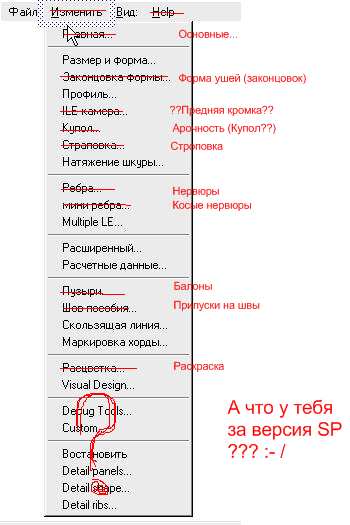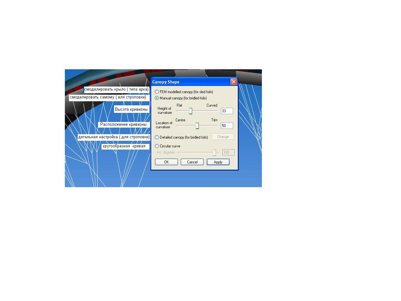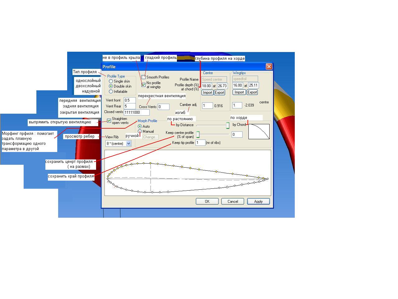 открывал этот файл русик и оставлял на верху экрана как пример, хотя через несколько дней выучил английское меню, там ни чего сложного просто тыкал и размеры разные ставил и смотрел на изменения в крыле и запоминал что и как,начинал со строповки.