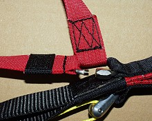 Я точно не знаю, но думаю что надо проходить по одним и тем же отверстиям, чтобы лишними дырками не ослаблять ткань. Судя по тому, что на ремнях подвески и свободных концах тоже делают так, то есть шьют несколько раз по одним и тем же дыркам, то видимо это правильно. Я видел как на серийном параплане идет строчка, после прошива петельки и еще прмиерно 2 см, на машинке включается реверс, далее шьется обратным ходом петелька и 2 см за нее, потом реверс отключается и петелька прямым ходом шьется еще раз, а потом строчка идет дальше как обычно. Получается, что петелька по одним дыркам прошивается 3 раза. Плюс на соседней строчке еще 3 раза, итого 6 раз примерно по 5 стежков. Если это нитки класса 70ЛЛ с разрывной нагрузкой 2 кг, то прочность пришива такой петельки примерно 6*5*2 = 60 кг. Что сравнимо с используемыми на верхнем ярусе стропами номиналом 70-80 кг.