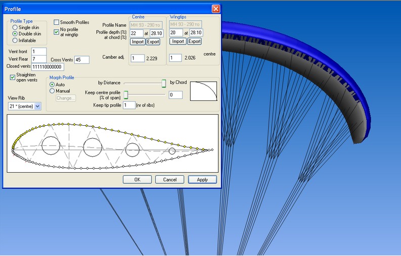 собрал лекало центральной нервюры и оболдел, поставил ширину 22 % и получилось макс. ширина профиля 59 см. это не многовато для параплана стандарта??? 22 % наверно надо было делать 20