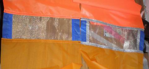 ...у меня усилены нервюры,а лента идет возле самой обшивки.Потом,я уже писал,что регулировка будет шнуровая,а сам шнур идет поверх лент.Ленты довольно широкие,заодно и функцию зашитного чехла для шнура будут выполнять.