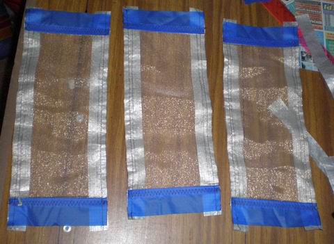 ...у меня усилены нервюры,а лента идет возле самой обшивки.Потом,я уже писал,что регулировка будет шнуровая,а сам шнур идет поверх лент.Ленты довольно широкие,заодно и функцию зашитного чехла для шнура будут выполнять.