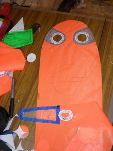 ...я карман всегда шью,продольно,из более плотной ткани,типа как мачткарман у паруса. А вот с блочком,может и нестоит морочиться,ставить его примерно посередине,а подстройка будет за счет длин плеч поводка.