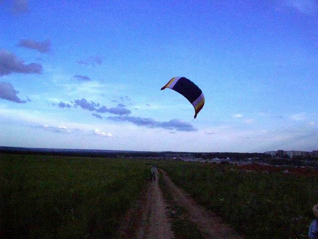 Ветер 4-5 м/с рванина перед грозой, которая началась через час. Управление решил использовать ручечное (на планку посажу, позже). Стропы 25 м.