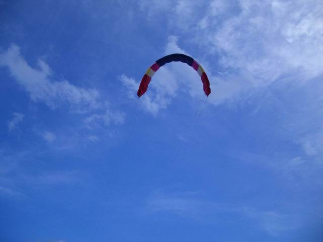 Что касается первого запуска,ветра думаю в 4 - 5 метров маловато для выводов,тем более рванина. Заднюю кромку нужно усиливать.Прошей ленту,или стропу,чтоб не тянулось.Еще по фото видно,что купол в районе задней кромки пузырится.Такое впечатление,что хвосты нервюр подрезаны и все.Там необходима сетка,чтоб предотвратить это раздувание. Также нужно подтянуть и отрегулировать поводок на ушах,а то видно,что провисает и практически неработает.