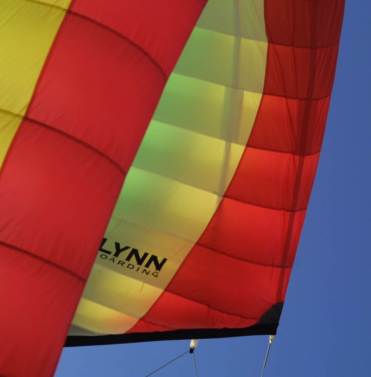 один конец пришит через усиление на пенель,второй- свободный.Ленты будут прорходить через отверстия в нервюрах . При регулировке кайта ,концы лент будут свободно проходить через законцовки.Потом будет установлен необходимый преднатяг ,и ленты зафиксирую окончательно. Rolling Eyes