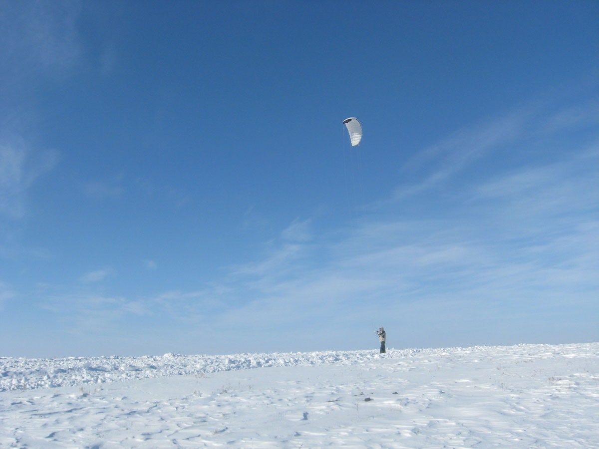 Заехав поглубже в поля, после небольшой работы над ошибками кайт стал более менее управляемым и стоял уверенно в зените,