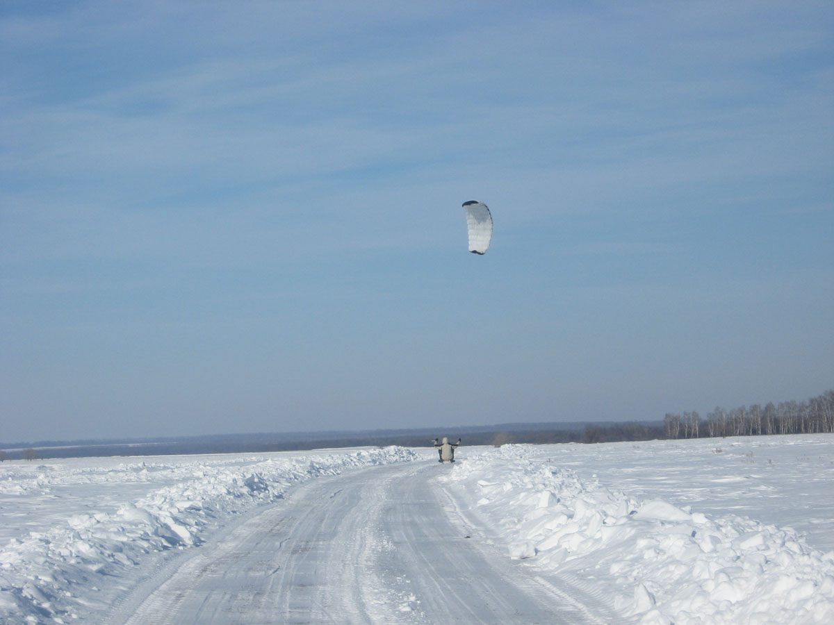фотоаппарат наконец то сдох, начали собираться домой как вдруг ветер усилился... решил потестить ветер =), пару раз прокатившись от порывов по снегу на ногах и известном месте по 6-7м понял что с такими стропами тут делать нечего...тянулись как резинки, тяга была зверская, кайт превращался в парус и становился совсем неуправляемым. Короче не стал испытывать судьбу. В общем день удался!