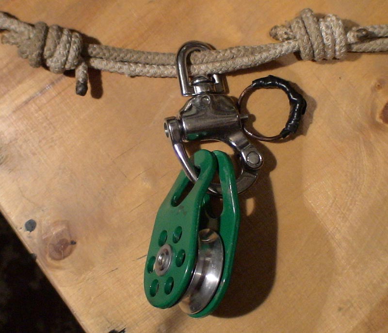 Вот он, отцеп с вертлюгом купил в Москве, в Экстриме, блоки есть во всех альпиниских лавках.