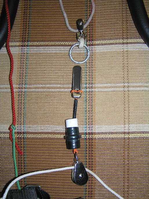 Удобно и то что вертлюг скользит по репу между двумя узлами, галсами ходить так легче. Сдвоеный реп с узлами привязываю к парасочной трапе.