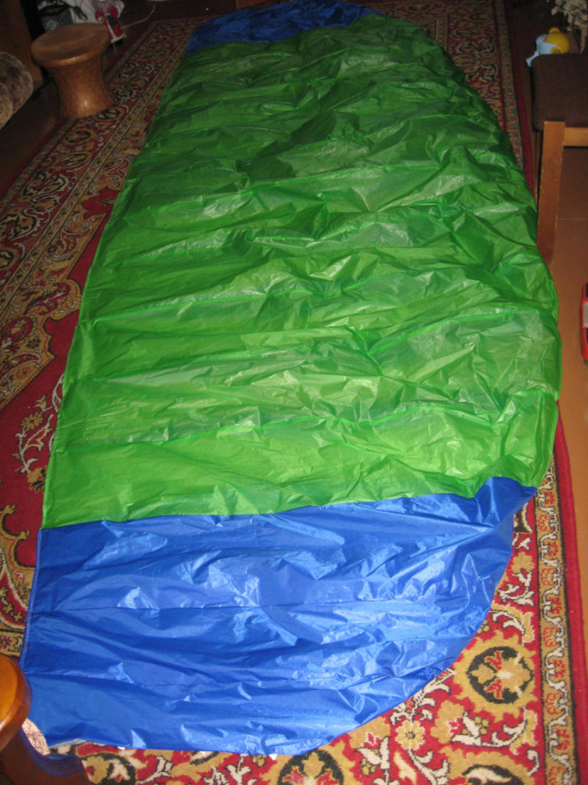 Принимайте в ряды самодельщиков. Тоже сшил мегафойл. Делал из кусочков гельвенора, еще давно заполучил обрези от парапланерного производства. Нервюры усиливал диагональными прошивками. Для строп использовал старые стропы от параплана, которые не держат номинал для параплана, но для кайта вполне неплохо. Петельки сшить не удалось, вязал узелочки. Пока фото нет, сделаю, обязательно выложу, получился очень пестрый и полосатый, т.к. из разноцветных кусочков.