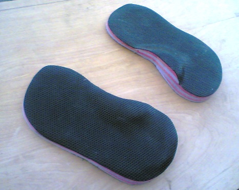 Вообщем на данный момент я сделал пару комплектов по одной технологии.Вполне доволен.В качестве основы идет туристический коврик.Нужно брать самый плотный,толщиной 10 мм.из него вырезаю три детали.первая,это по форме падса,вторая ,участок под пятку ,и третья,небольшая,это участок под середину стопы..Вторая и третья деталь обрабатывается наждачным кругом,для получения нужной клиновидной формы,потом весь бутерброд склеивается промышленным обувным клеем.Еще пробовал какой-то ,вроде "найрит " называется,тоже намана..На самый верх обязательно нужно клеить тонкую рифленую резину.Выбирать такую,чтоб пупырышки прикольные были.Без этого слоя ,нога по мокрому будет очень сильно скользить,да и жесткости коврика маловато будет.Вообщем все придавливается(я пакет с песком использую).Корда высохнет,обрабатываю по-контуру на наждачном круге.А,чуть незабыл,с коврика перед склеиванием,надо глянец наждачкой снять.Готовые падсы на мой взгляд лучше приклеивать непосредственно на пластик.Клей может подразъесть краску или грунт,да и вообще ,клеить к краске как-то неочень(ИМХО)
