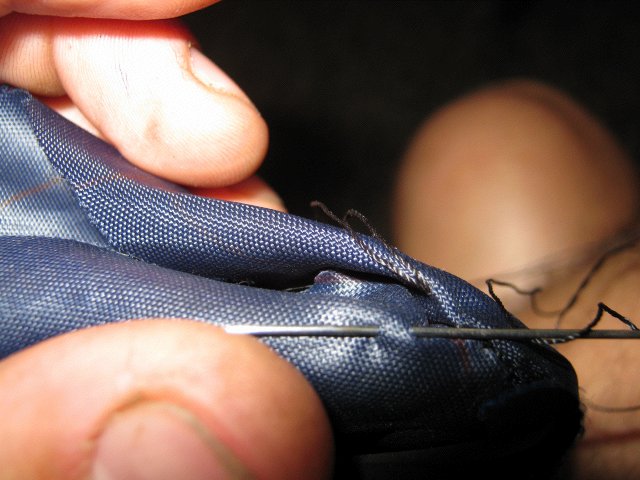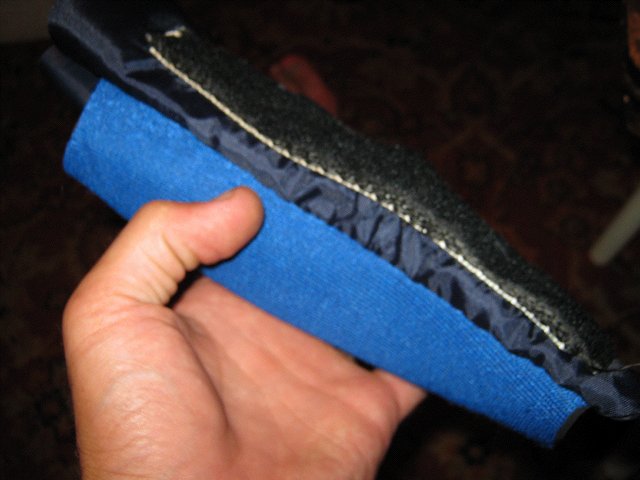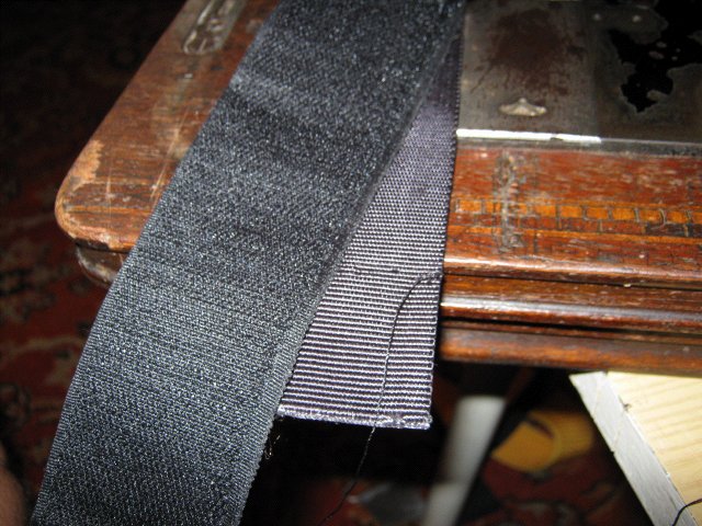 и теперь пришиваем липучку к свободной лямке с одной стороны ворсистую с другой колючую.