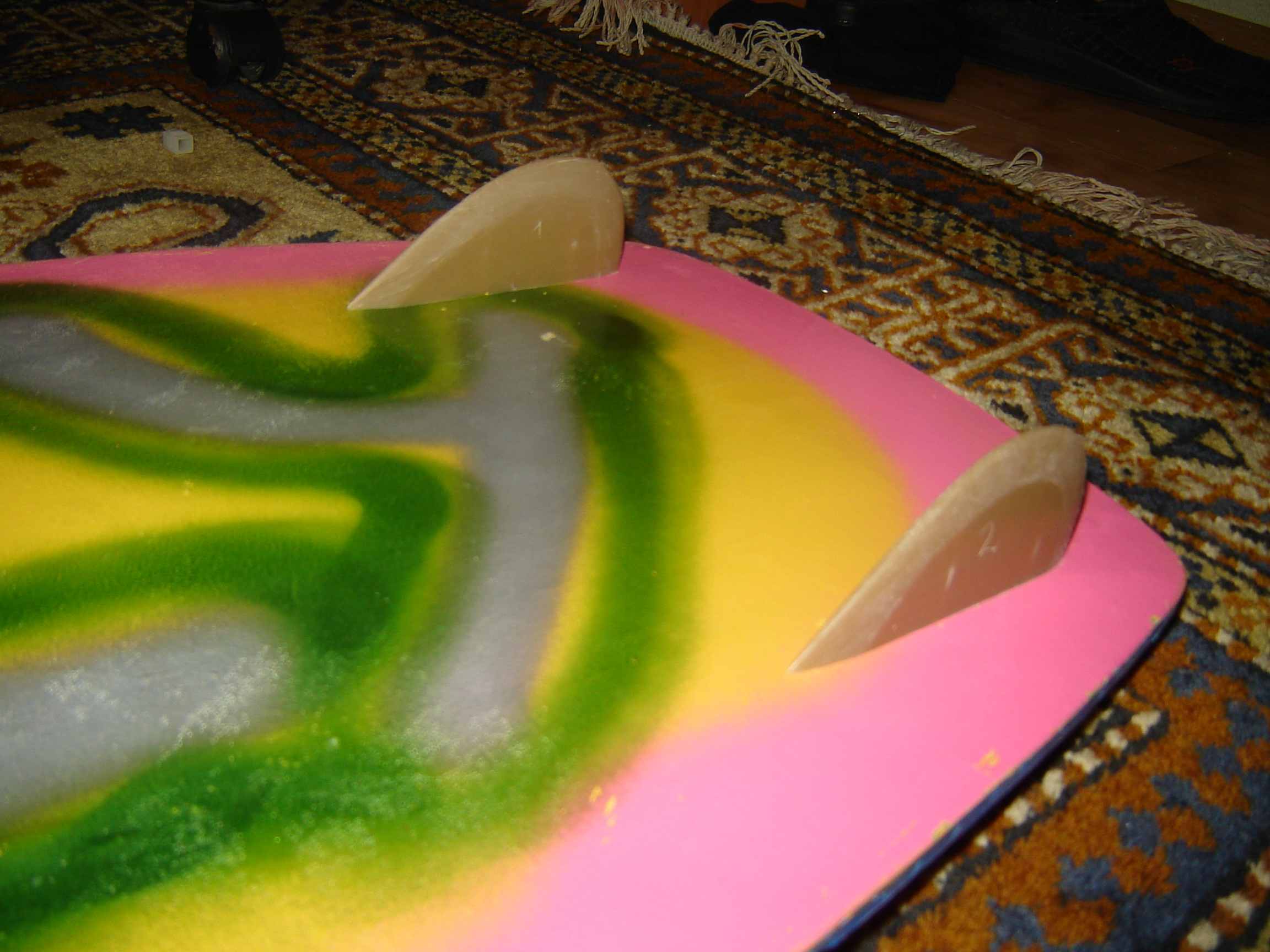 ... а нехо попробовать пяточный край сделать вогнутым? на моей зьобре такая фишка позволяет некисло так вырезаться в слабый ветер. Только кромки поострее нужно,хотя это дело вкуса. И еще один момент,на некоторых режимах такая некислая струя по ноге фигачит,что кошмар.