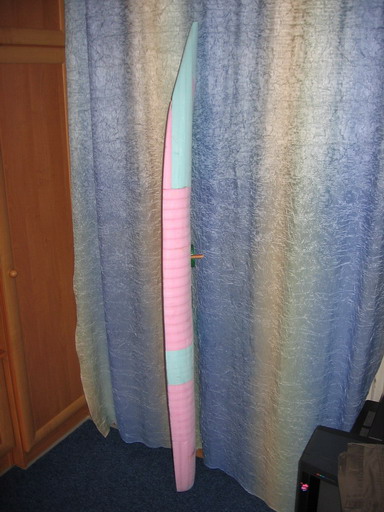 Я сам 10лет назад постоил свой первый вейкборд. Он сендвичевой конструкции, которая ещё усилена коркасом из реек и брусков сосны. Сверху шлифованного пенопласта слой стеклоткани, уложенной на эпоксидной смоле. Доска в толщину 30мм оказалась очень жесткой и плавучей Но как раз из-за этой хорошей плавучести возникали определённые неудобства: во время старта в воде она всегда наплаву и держит ноги на поверхности. Дабы сбалансировать как-то собственный вес приходится одевать спасательный жилет. Картина улучшается, но с "поплавком" на ногах всё же сложно барахтаться. Кто катался на тонких стеклопластиковых бордах поймет разницу.
